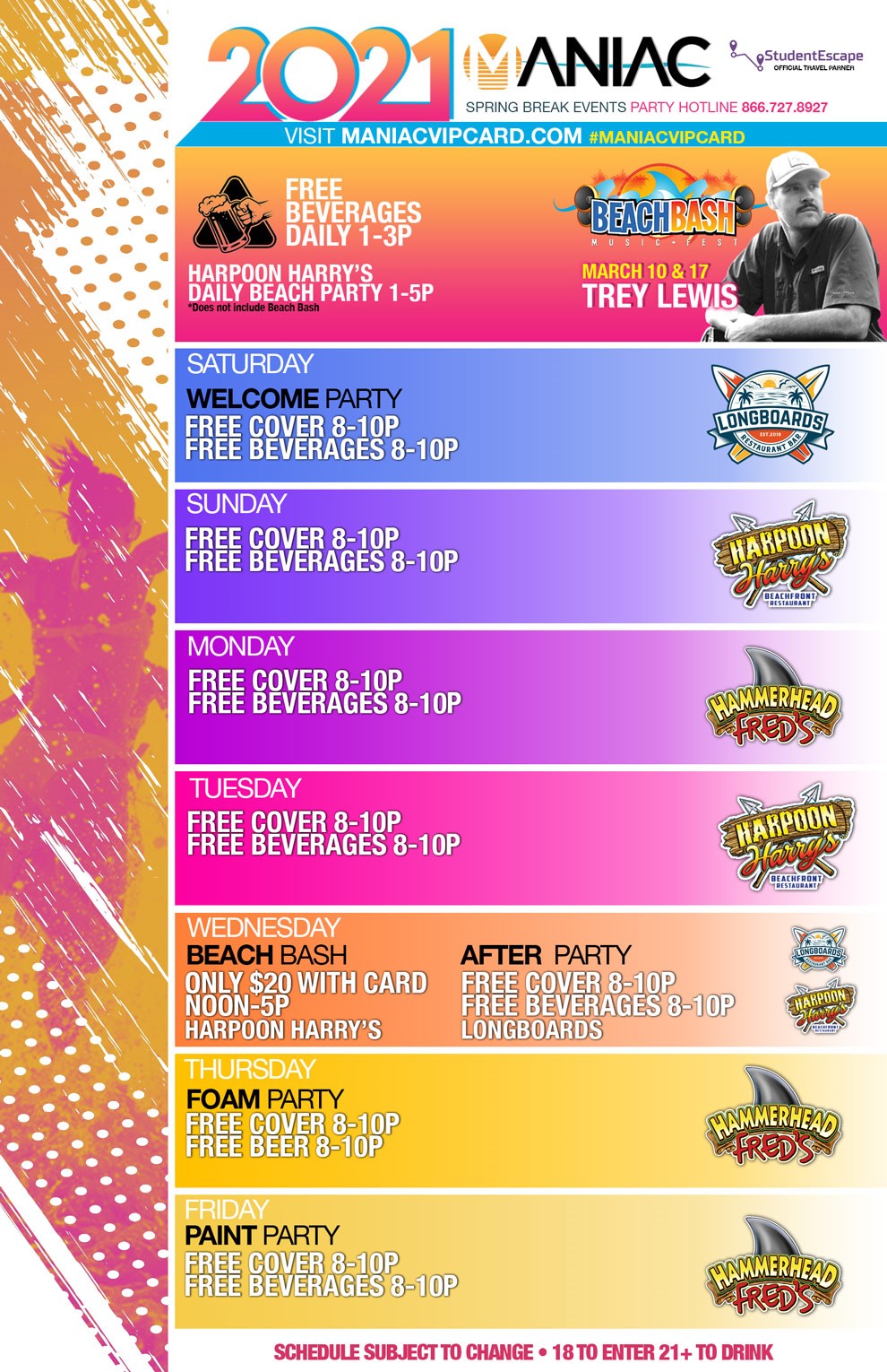 - Centrally located to all spring break parties